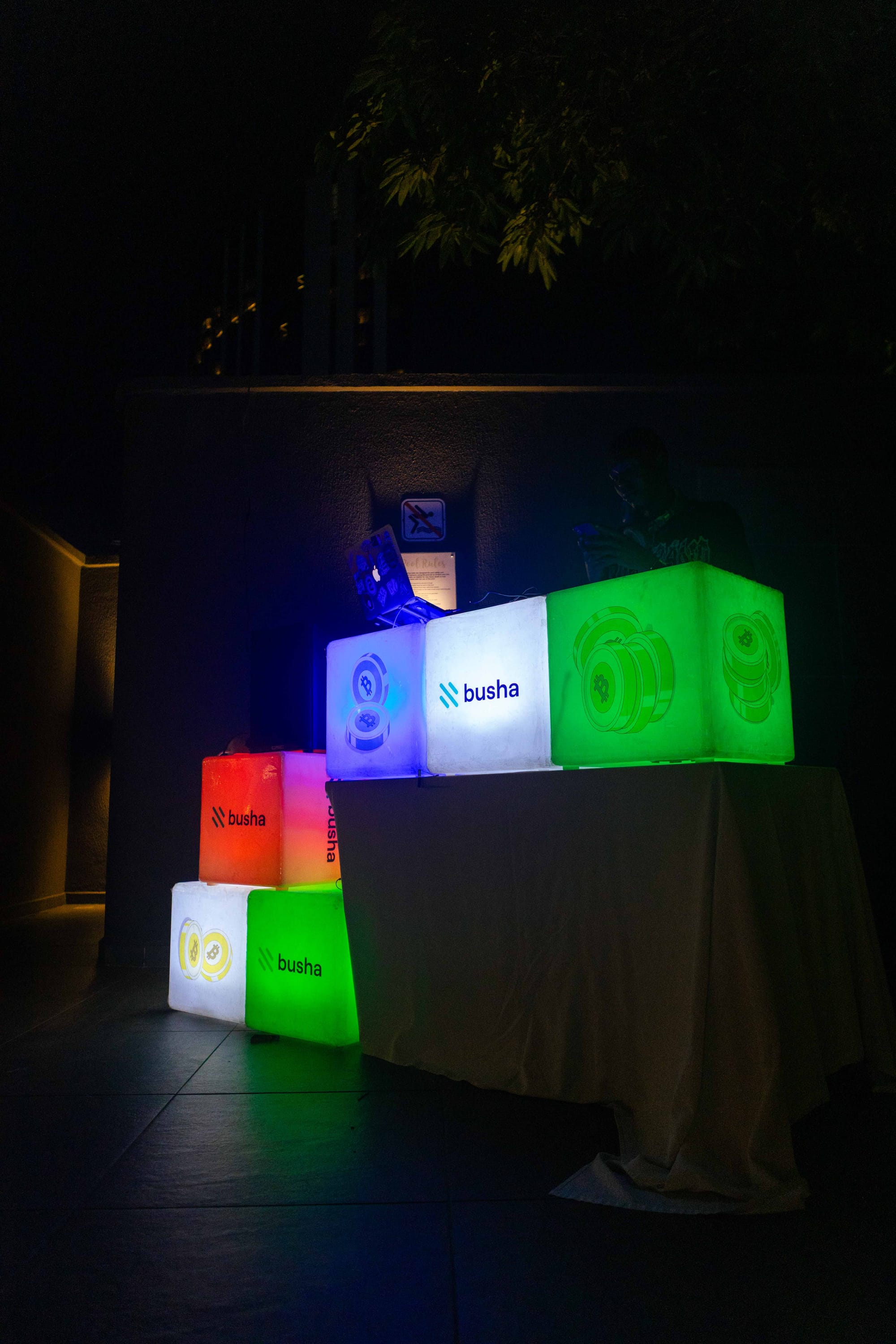 You couldn’t miss us. From flagpoles and roll-up banners to LED-lit cubes glowing at the after-party, our setup kept Busha visible all through the event.